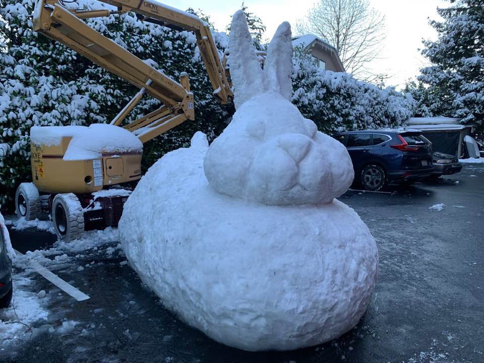 Trending Snow Rabbit Sculpture Stands on a ladder to attach the ear of a giant snow rabbit he and his friends built on march 21, 1977. Snow Rabbit Sculpture : Ski bunny rabbit snow sculpture at beautiful sunny day.